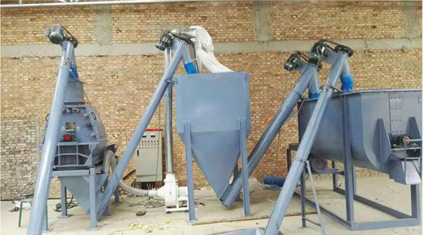 4、使用絞龍?zhí)嵘龣C上料、加快了物料的傳輸速度。
